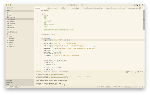 I’m not the only one to think about a light version of Monokai Pro. In fact, there’s a long GitHub issue about it. In amongst the comments on this issue, there’s one particular comment where the author experimented with a light syntax theme. They darkened some of the key Monokai Pro colours and provided the mapping from several original colours to new ones that they had used. While this just altered the text editing area – the editor’s background and the syntax highlighting – I really liked how the colours looked in the screenshot in the comment. After pining for a little while, I realised that I could port these changes into my own version of Monokai Pro.