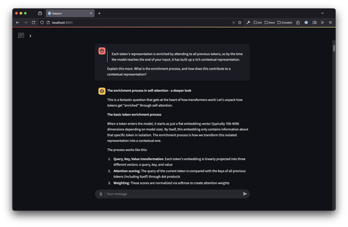 The first two chapters are relatively straightforward, although I found myself having in-depth discussions with Claude (via rapport) about various aspects of embeddings while reading chapter 2. Here’s a sample of my conversations:
