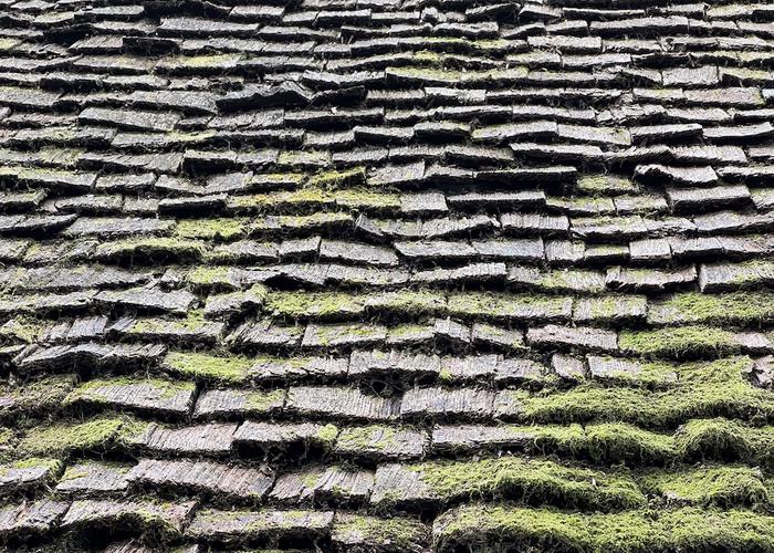 I couldn’t help falling for the higgledy-piggledy, nature-encrusted look of these moss-covered wooden tiles on a building in Leigh Woods, on the outskirts of Bristol.